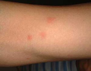 イエダニの特徴として、刺す場所が下腹部や脇の下と言った服の下であることが多いです。また、刺され箇所は複数個所で、水泡ができるのが特徴です。かゆみは数日から1週間程度で引きます。