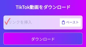 大きな流れはSnapTikと変わりません。SSSTIKのサイトにアクセスし、赤チェックのついている場所にコピーしたURLを張り、「ダウンロード」のボタンを押します。